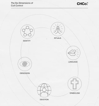 As follows are the six structural pillars of cult control. Each one maps onto the mechanics of identity construction, emotional dependency, semantic control, and behavioral feedback.