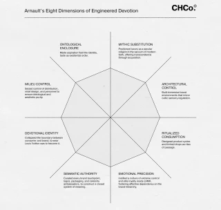 This was not incidental. Arnault’s system of engineered devotion draws directly from the tactics of ideological control, adapted into the language of commerce. His strategy advances across eight dimensions: